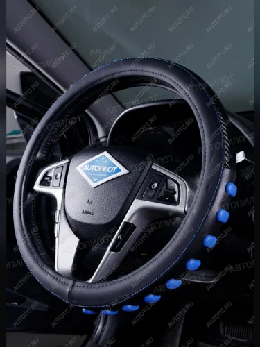 Оплётка на руль (37-39см BLW-011 кож/зам+карбон ) Автопилот (черный/синий) с доставкой в г. Керчь