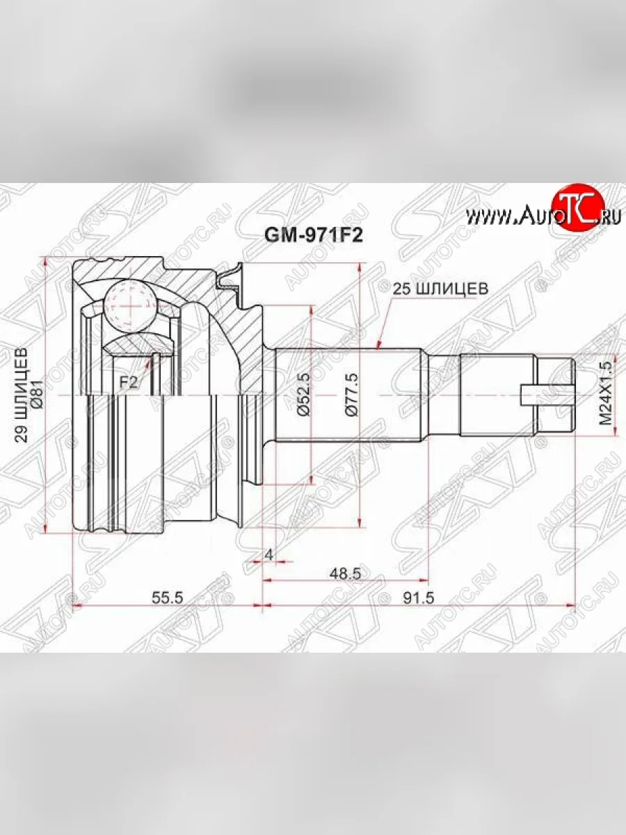 Шрус SAT (наружный, 29*25*52.5 мм) Chevrolet Aveo T300 седан (2011-2015) в Керчи Республика Крым