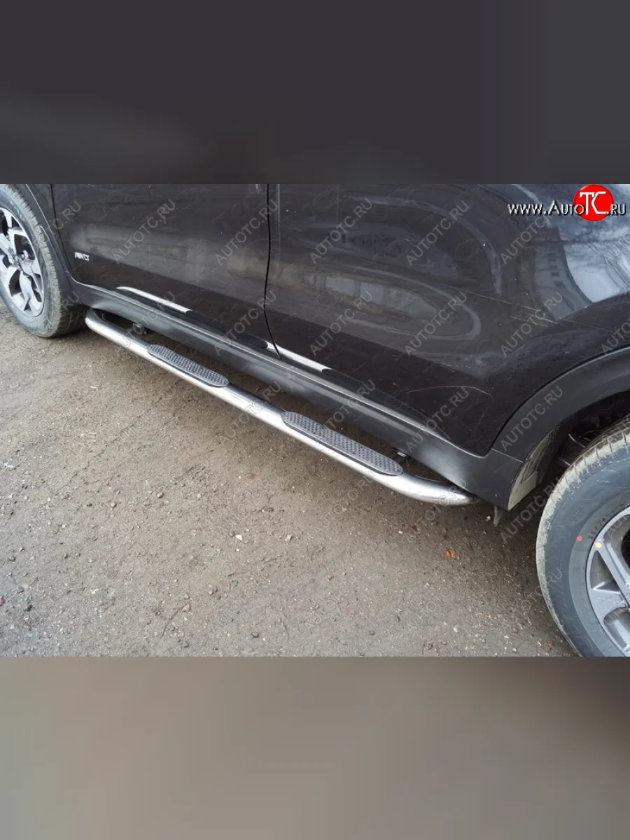 Пороги овальные гнутые с накладкой 75х42 мм KIA Sportage (2018-2022) 4 QL (серые) в Керчи Республика Крым