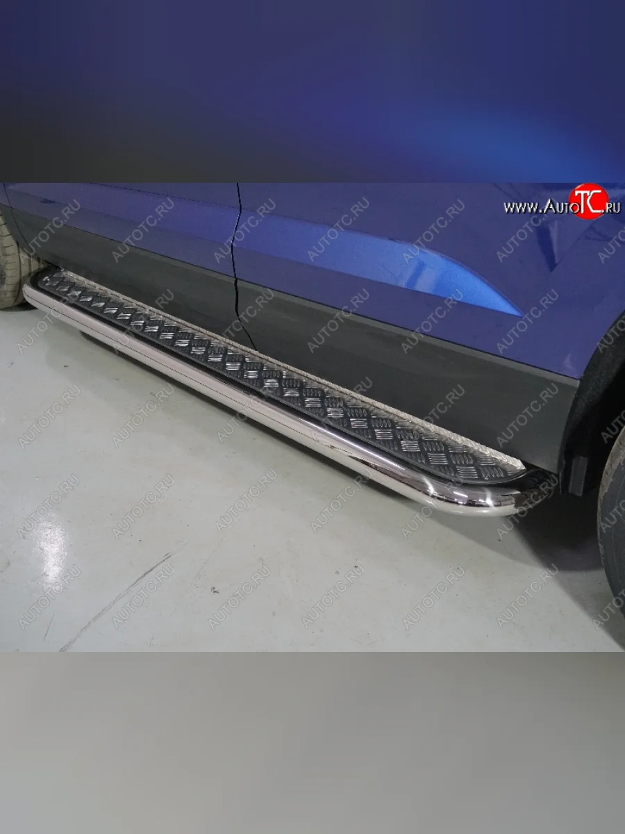 Пороги с площадкой 60,3 мм ТСС Тюнинг Volkswagen Taos (2020-2022) (серые) в Керчи Республика Крым