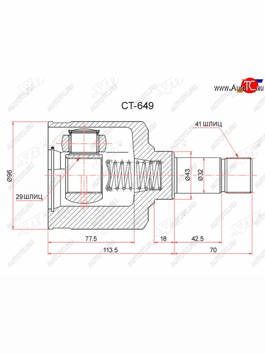 | Наименование | Шрус внутренний LH PEUGEOT BOXER III 06-CITROEN JUMPER III 06-FIAT DUCATO III 06- SAT CT-649 в Керчи Республика Крым |