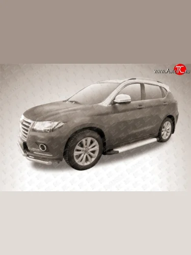 Алюминиевые пороги Slitkoff Optima Silver Haval H2 (2014-2021) с доставкой в г. Керчь