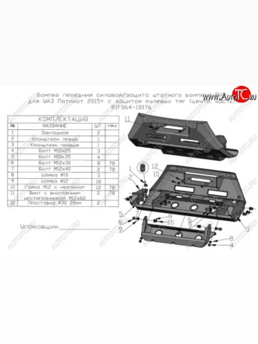 Бампер силовой защита штатного бампера (центральная часть) РИФ Уаз Патриот 3163 5 дв. 2-ой рестайлинг (2017-2025) (передний с защитой рулевых тяг) в Керчи Республика Крым