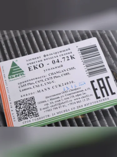 Фильтр воздушный салона CHANGAN CS5,CS55 Plus,CS75,CS55 Plus,UNI-T,UNI-V угольный EKOFIL в Керчи Республика Крым