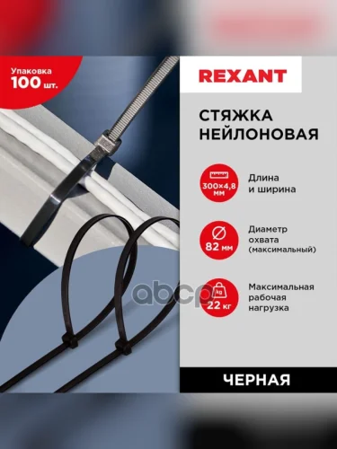 Хомут-Стяжка Кабельная Нейлоновая 300X4,8 Мм, Черная, (100 ШтУп) Rexant REXANT арт. 071303 в Керчи Республика Крым