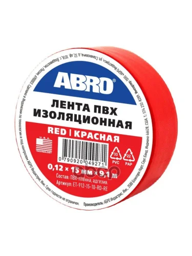 Изолента Пвх (15Мм*9,1М) Abro Красная (Имп.) (Et-912-15-10-Rd-Re) ABRO арт. ET-912-15-10-RD-RE в Керчи Республика Крым