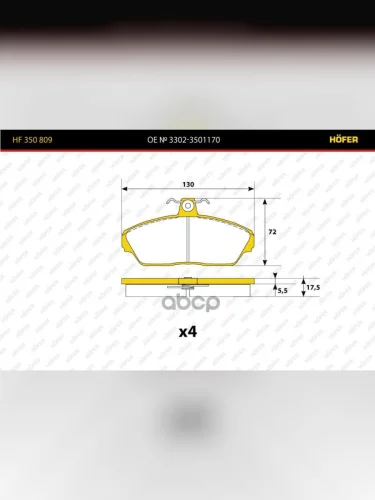 Колодка Тормозная Передняя Для АМ Газ 3302, 3110 (К-Т) Hofer (3302-3501170) HOFER арт. HF 350 809 в Керчи Республика Крым