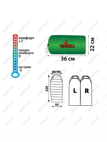 | Наименование | Мешок спальный Totem Hunter XXL (220x90) (Левый) (ТК: +7C) TRAMP tts-005-l с доставкой в г. Керчь |