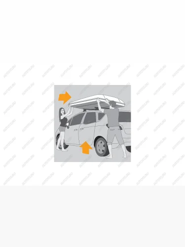 Если дверь багажника автомобиля открывается вверх, при установке палатки нужно рассчитывать место на крыше таким образом, чтобы дверь багажника не упиралась в палатку в открытом положении.
