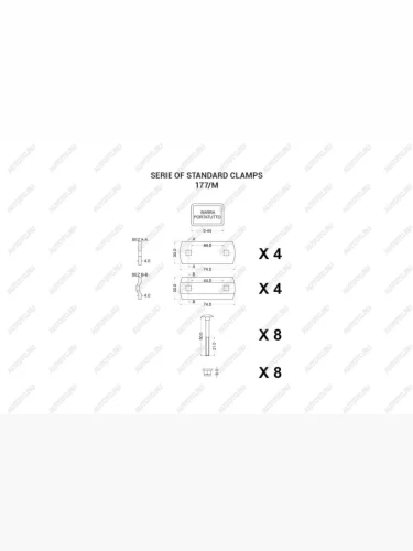 В стандартную комплектацию входят 4 комплекта зажимов для монтажа. Один комплект состоит из двух прочных болтов, пластины для вставки в направляющую, пластины-зажима и стандартных крепежных деталей.