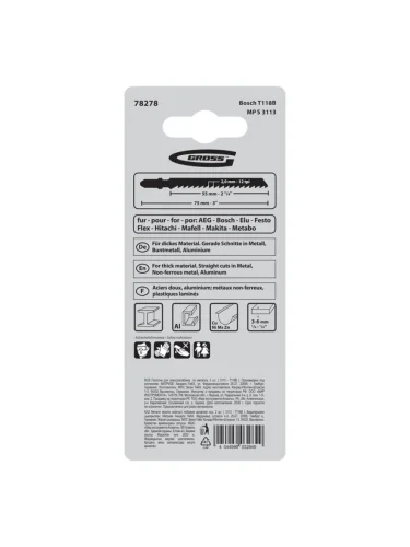 | Наименование | Пилка для лобзика набор 2шт. металл 76мм GROSS в Керчи Республика Крым |
