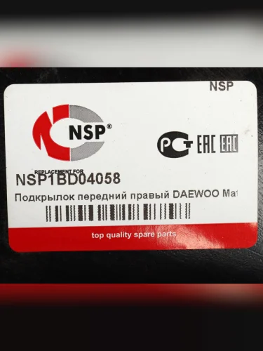| Наименование | Подкрылок DAEWOO Matiz (98-) передний правый NSP в Керчи Республика Крым |
