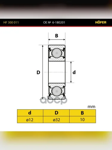 Подшипник 180201 Генератора Ваз 2101-08, 1111 Малый Hofer (Hf 300 011) HOFER арт. HF300011 в Керчи Республика Крым