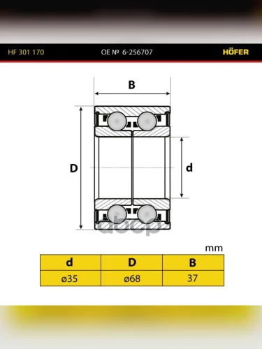 Подшипник 256707 Ступицы Передней Ваз 1118, 2170, 2190, Hofer (Hf 301 170) HOFER арт. HF 301 170 в Керчи Республика Крым