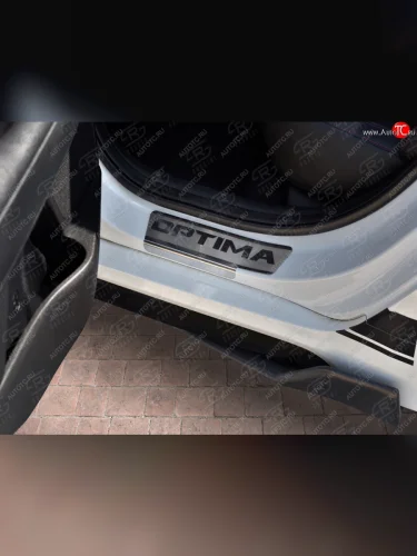 Пороги накладки Russtal KIA Optima JF седан рестайлинг (2018-2020) (Нержавейка шлифованная с надписью) в Керчи Республика Крым