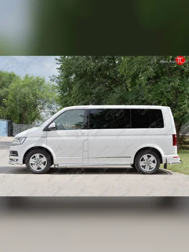 Правая защита порогов SLITKOFF из круглой трубы d63 мм v2 Volkswagen Multivan T6 дорестайлинг (2016-2019) в Керчи Республика Крым