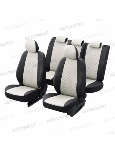 Комплект чехлов сидений (экокожа, Active/без подлокотника) Автопилот Ромб Skoda Kodiaq (2017-2023) 1 NS7 (черный/белый) с доставкой в г. Керчь