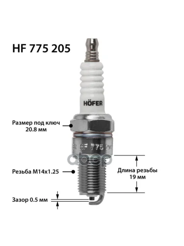 Свеча Hofer Hf 775 205 Ваз 2101-07,2108-2115,2121-213,Ока (0,5Мм, R) (К-Кт, 4Шт.) (Hf 775 205) HOFER арт. HF 775 205 в Керчи Республика Крым