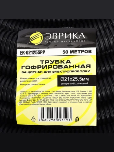 | Наименование | Трубка защитная для электропроводки гофрированная полипропилен d=21.0мм бухта 50м ЭВРИКА в Керчи Республика Крым |