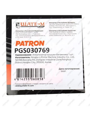 | Наименование | Упор крышки багажника (газовый) PATRON в Керчи Республика Крым |