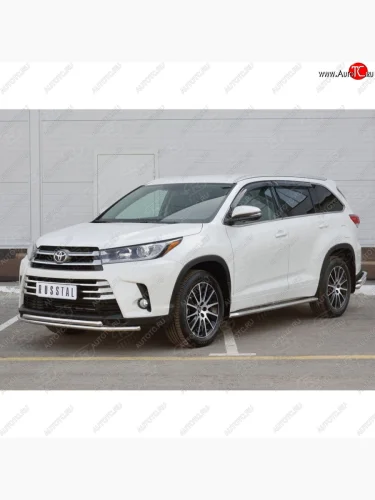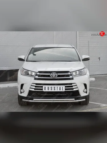 Защита переднего бампера (2 трубыØ42 мм, нержавейка) SLITKOFF Toyota Highlander (2013-2017) XU50 в Керчи Республика Крым
