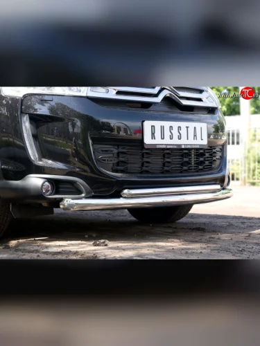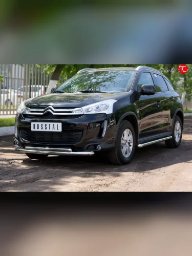 Защита переднего бампера (2 трубыØ63 и 42 мм, нержавейка) SLITKOFF CITROEN C4 aircross (2012-2017) в Керчи Республика Крым