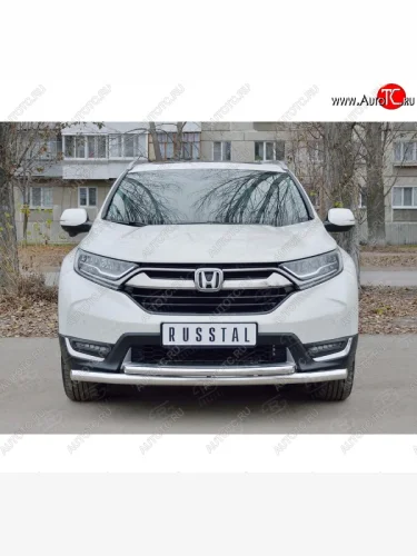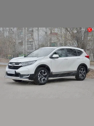 Защита переднего бампера (2 трубыØ63 и 42 мм, нержавейка) SLITKOFF Honda CR-V RW,RT дорестайлинг (2016-2020) в Керчи Республика Крым
