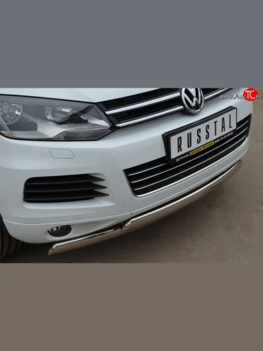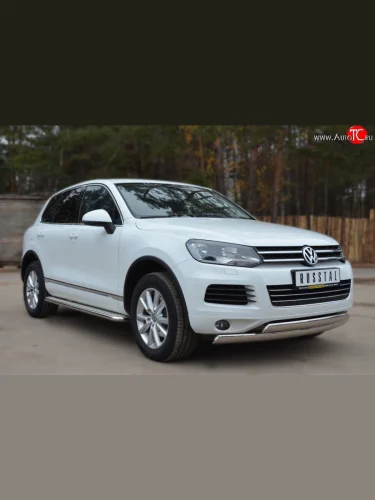 Защита переднего бампера (2 трубыØ75х42 мм, нержавейка) Russtal Volkswagen Touareg 2 NF дорестайлинг (2010-2014) в Керчи Республика Крым