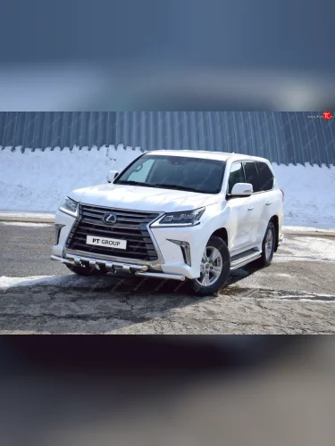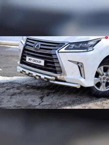 Защита переднего бампера двойная с зубьями из труб d63/63 мм Petroil Tuning Lexus LX450d (2015-2022) J200 (Нержавеющая полированная сталь) с доставкой в г. Керчь