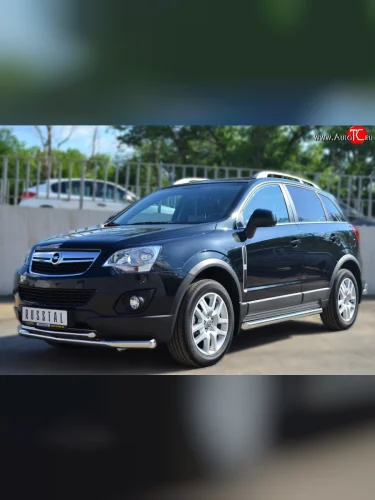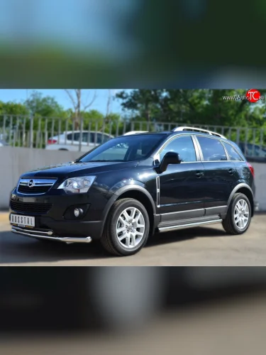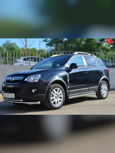 Защита порогов из круглой трубы диаметром 63 мм Russtal Opel Antara рестайлинг (2010-2015) (Защита порогов с со скосами на торцах (вариант 1)) в Керчи Республика Крым