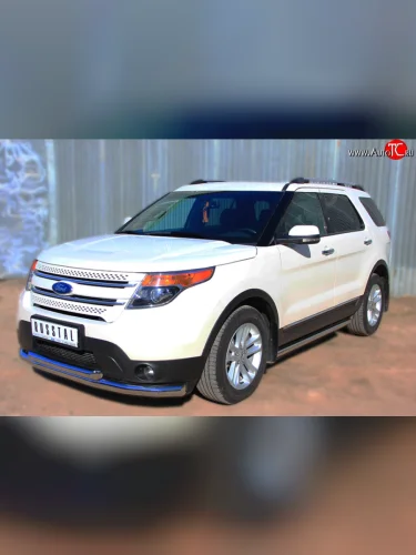 Защита порогов из круглой трубы диаметром 63 мм SLITKOFF Ford Explorer U502 дорестайлинг (2010-2016) в Керчи Республика Крым