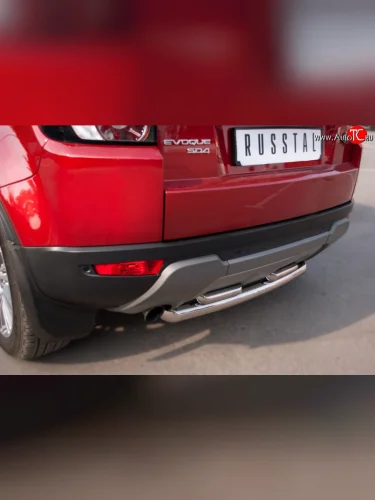Защита заднего бампера (2 трубы Ø63 и 42 мм, нержавейка, Prestige u Pure) SLITKOFF Land Rover Range Rover Evoque 1 L538 дорестайлинг 5 дв. (2011-2015) в Керчи Республика Крым
