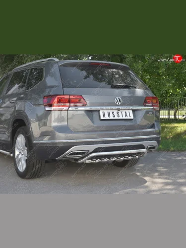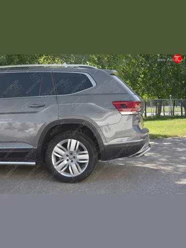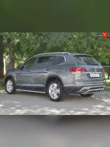 Защита заднего бампера (Ø42 мм, волна+зубы, нержавейка) SLITKOFF Volkswagen Teramont 1 CA1 дорестайлинг (2016-2020) в Керчи Республика Крым