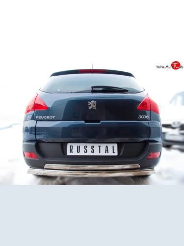 Защита заднего бампера (Ø75х42 мм, нержавейка) Russtal Peugeot 3008 рестайлинг (2013-2017) в Керчи Республика Крым