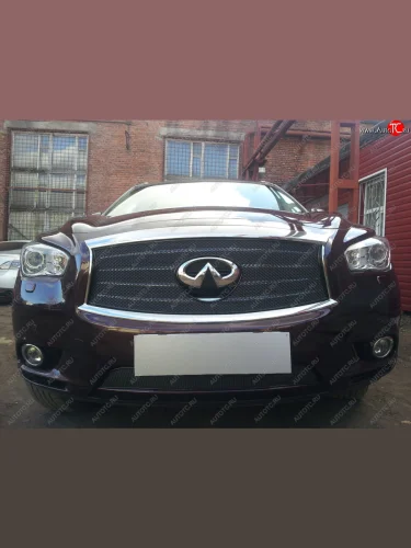 Защитная сетка радиатора в бампер (ячейка 4х10 мм, низ) Стрелка11 Премиум INFINITI QX60 L50 дорестайлинг (2013-2016) (черная) в Керчи Республика Крым