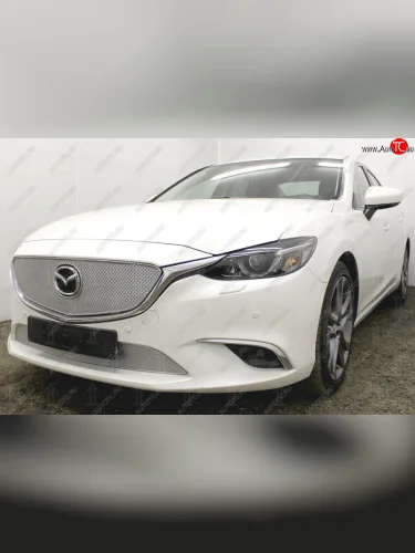 Защитная сетка в бампер (низ, компл. Activ, ячейка 4х10 мм) Alfeco Премиум Mazda 6 (2015-2018) GJ (Хром) в Керчи Республика Крым