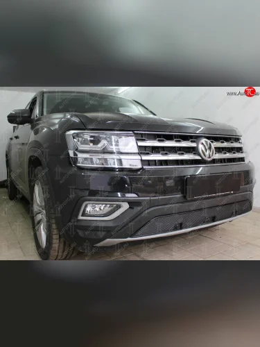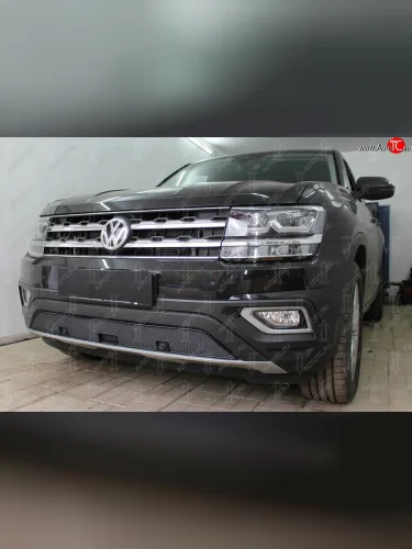 Защитная сетка в бампер (низ, ячейка 4х10 мм) Стрелка11 Премиум Volkswagen Teramont 1 CA1 дорестайлинг (2016-2020) (Чёрная) в Керчи Республика Крым