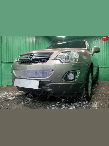 Защитная сетка в бампер (середина, ячейка 4х10 мм) Стрелка11 Премиум Opel Antara рестайлинг (2010-2015) (Хром) в Керчи Республика Крым