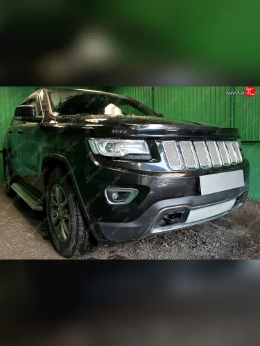Защитная сетка в решетку радиатора (ячейка 4х10 мм, 7 частей, Overland, SRT8) Стрелка11 Премиум Jeep Grand Cherokee WK2 1-ый рестайлинг (2013-2018) (хром) в Керчи Республика Крым