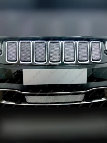 Зимняя заглушка решетки радиатора (Laredo, Limited) Стрелка11 Jeep Grand Cherokee WK2 1-ый рестайлинг (2013-2018) (с защитной сеткой для установки, хром) в Керчи Республика Крым